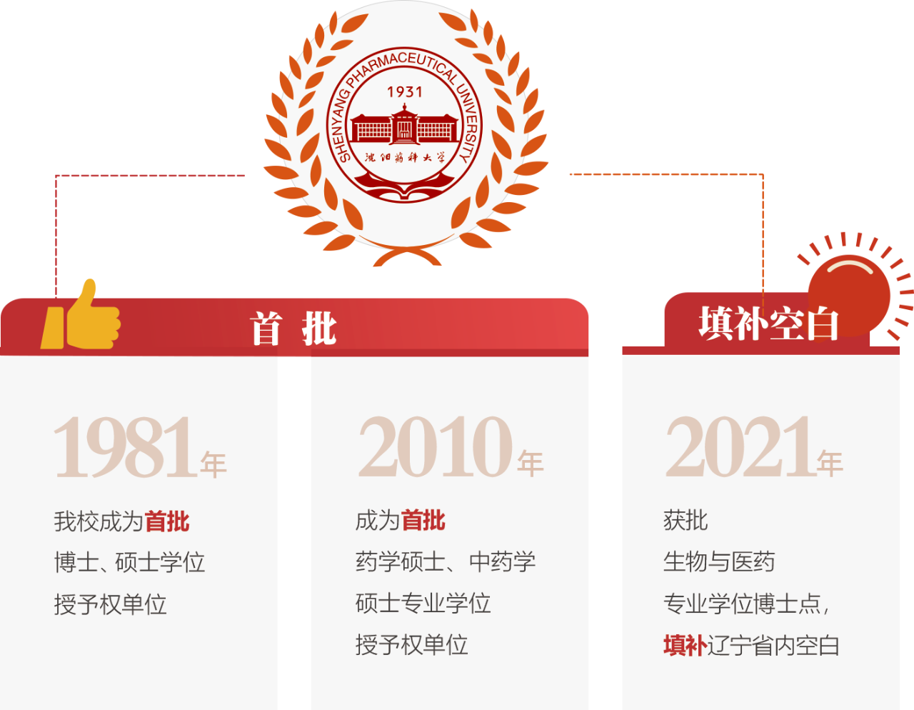 沈阳药科大学是我国首批获得博士、硕士学位授予权的单位之一,经过多年发展,现已形成了以药学为优势和特色,理、工、医、管等学科门类协调发展的多学科体系。