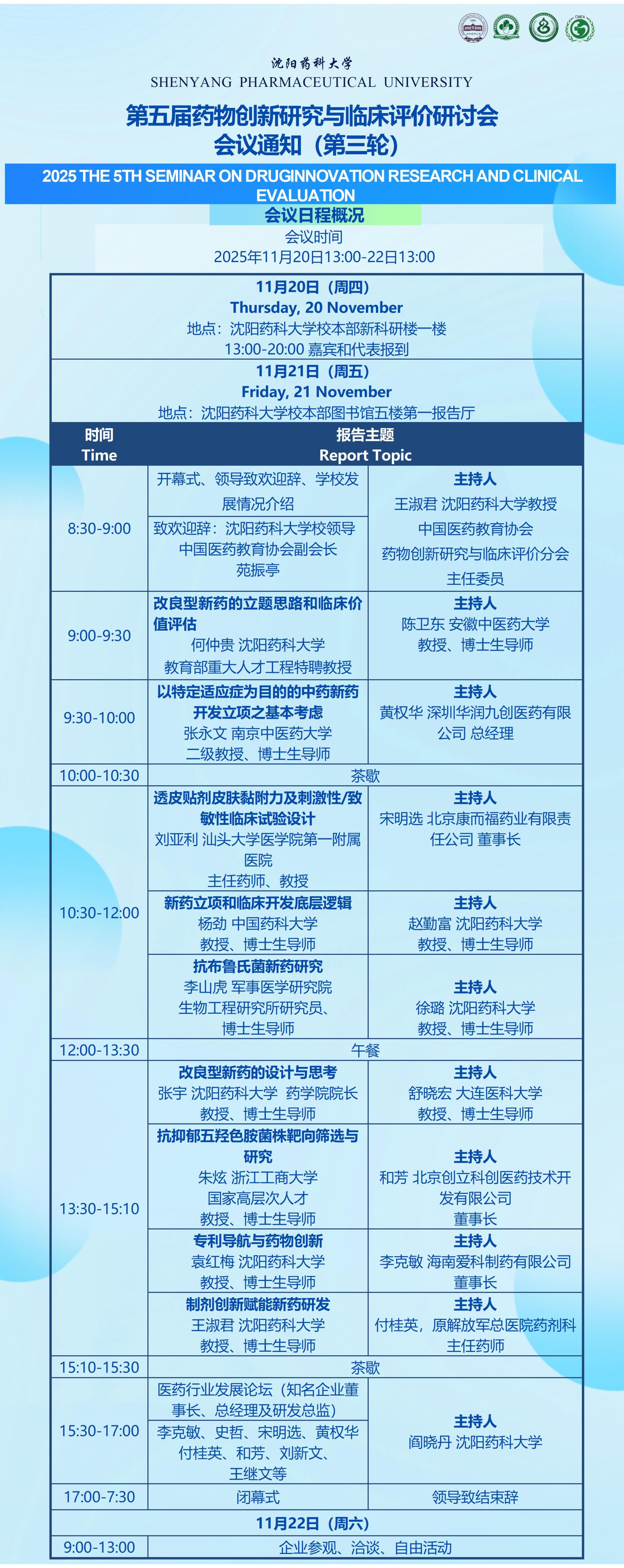 会议地点:辽宁省沈阳市,沈阳药科大学校本部图书馆五楼第一报告厅